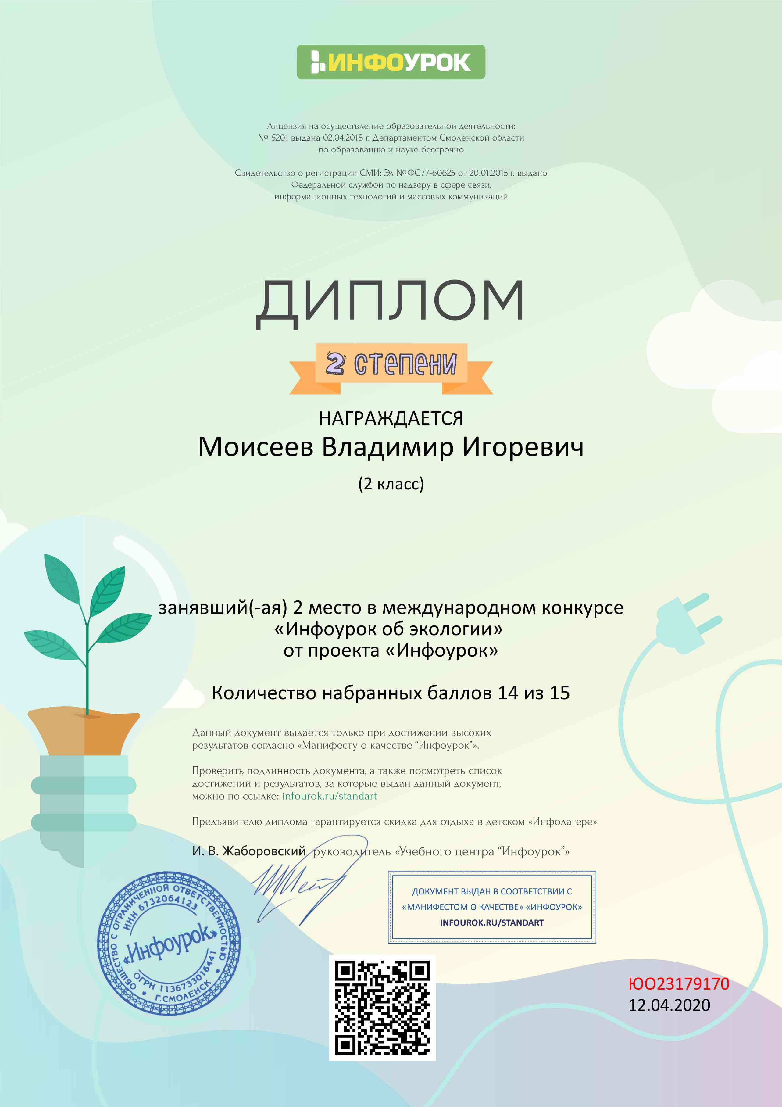 Наши достижения! 28 мая 2020 Поздравляем Моисеева Владимира,ученика 2 Б класса, победителя Международной олимпиады "Дорога к знаниям Апрель 2020" по окружающему миру и литературе. Желаем новых побед! 5Б класс Facebook Twitter Назад Вперёд