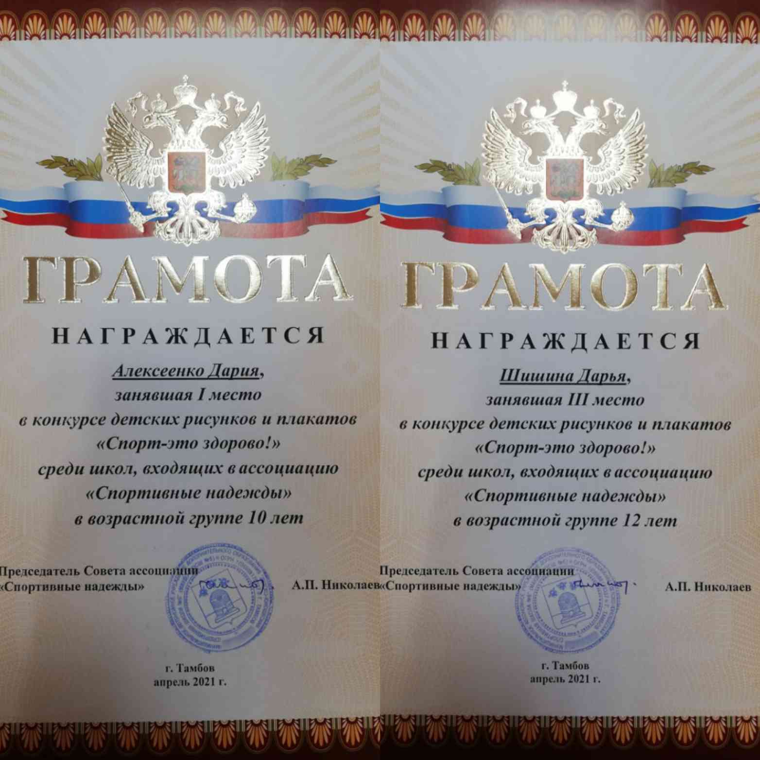Поздравляем Ильина Тимура (4а класс) и Алексеенко Дарью (3б класс), занявших первые места, а также Шишину Дарью (5а класс) с 3 местом в конкурсе рисунков «Спорт-это здорово», который проводила ассоциация «Спортивные надежды», . Благодаря ребятам Православная гимназия была награждена грамотой за первое место в данном конкурсе среди школ, входящих в ассоциацию.