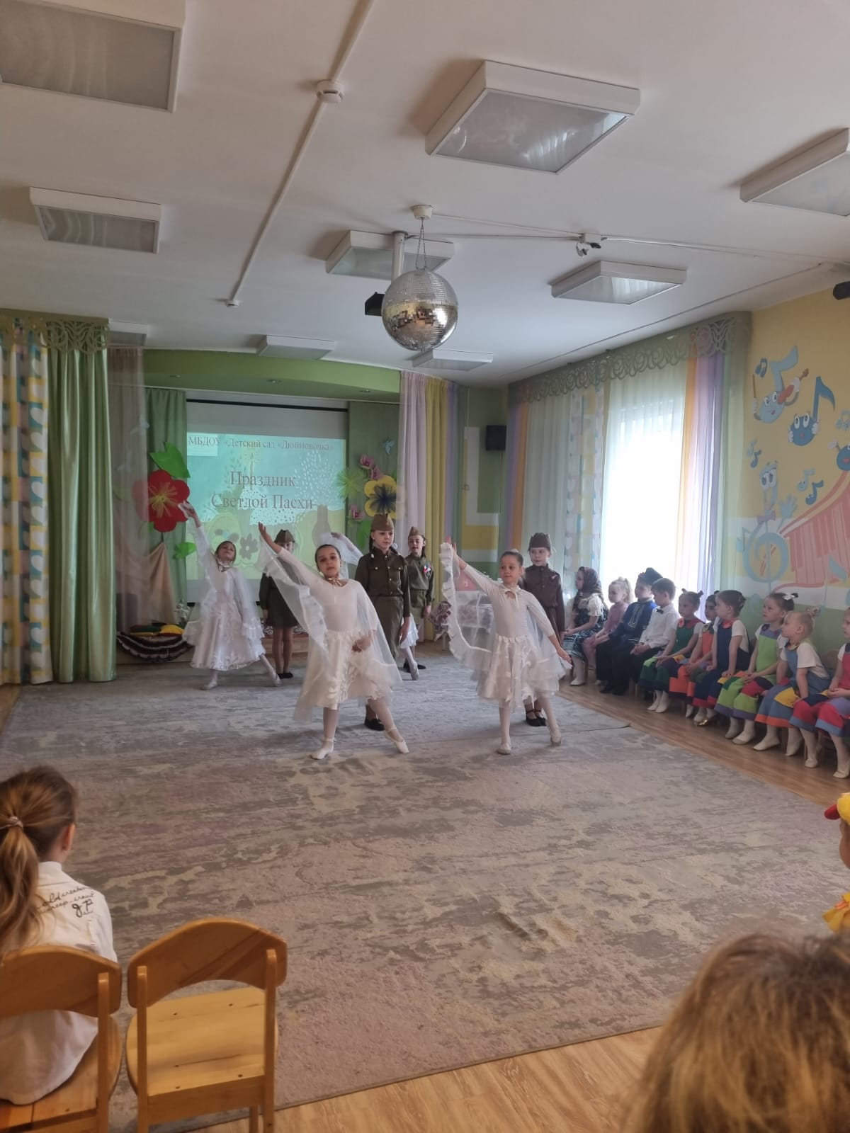 В преддверии великого праздника Дня Победы ребята показали маленьким друзьям небольшую концертную программу. Совместно поучаствовали в конкурсных испытаниях и обменялись сладким призами.