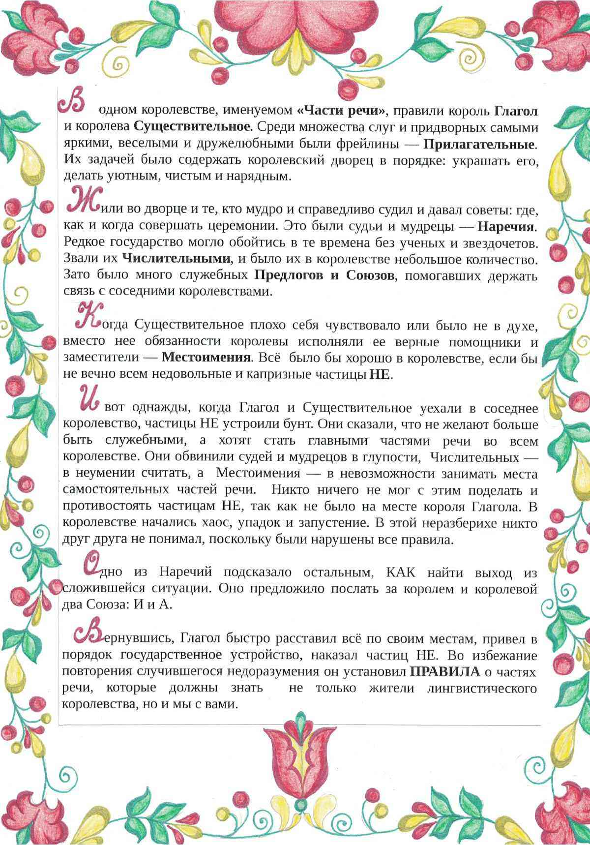 Лингвистическая сказка «Кто главный в королевстве Частей Речи» (Василенко Мария, 5б)